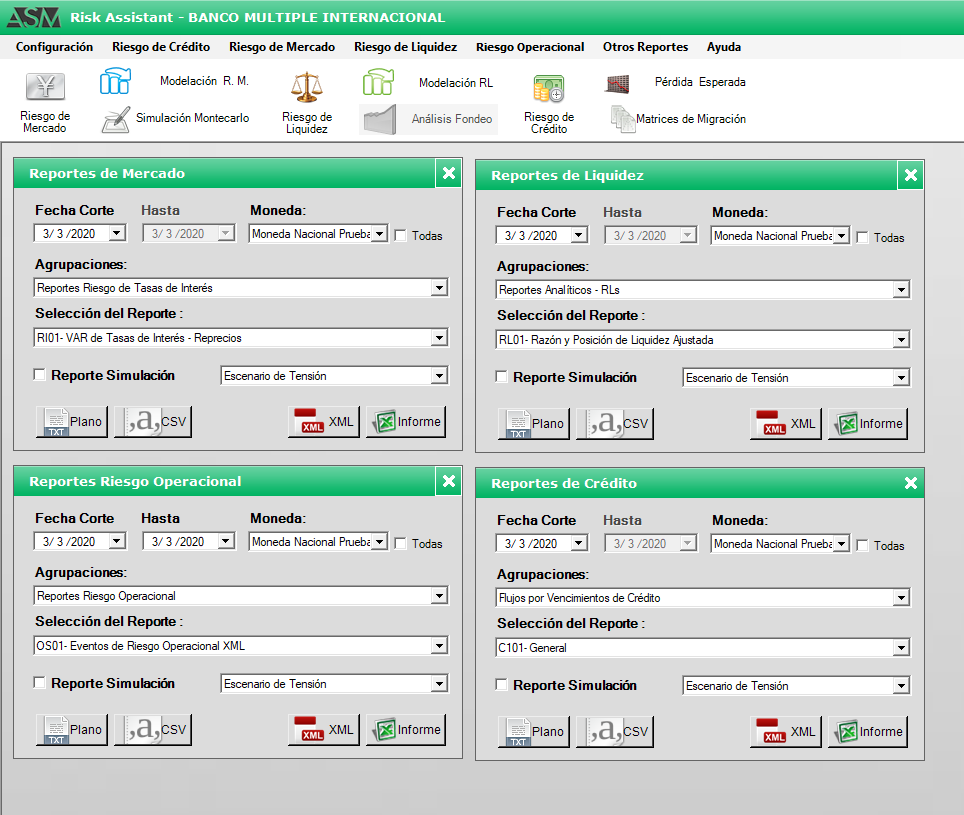 Risk Assistant®: Familia de sistemas para la gestión integral de riesgo que incluye el manejo sistematizado de la exposición a Riesgo de Mercado, Riesgo de Crédito, Riesgo de Liquidez y Riesgo Operacional, así como gestiones de portafolios y ALM. El RiskAssistant® interactúa con las bases de datos propias de la institución extrayendo de manera automatizada o manual la información para cada tipo de análisis; lo cual consigue mediante una estructura modular y un esquema de tres versiones según el requerimiento, el grado de sofisticación deseado y la experiencia en gestión de riesgo por parte del cliente.